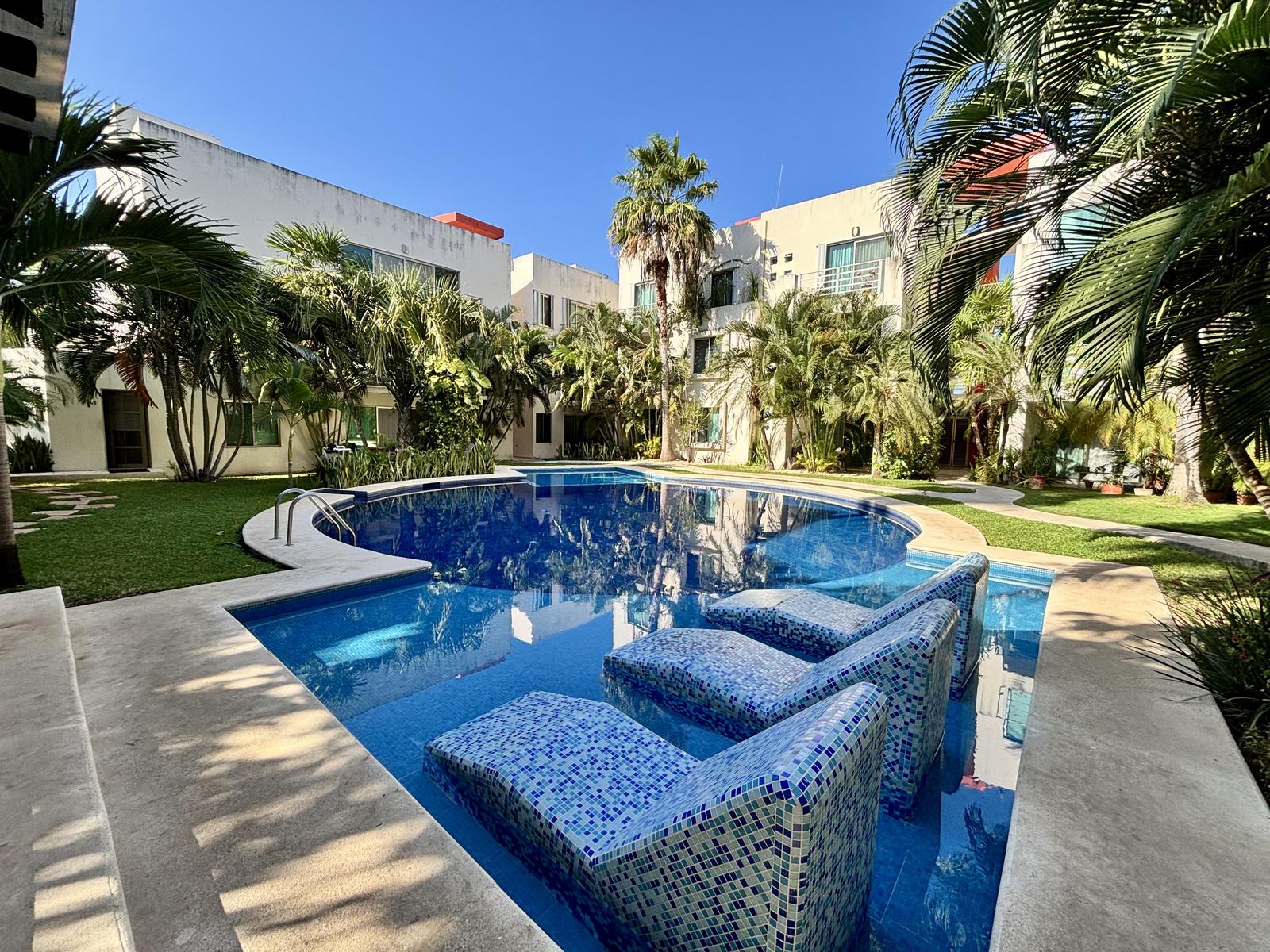 Departamento en Planta Baja en Venta y Renta | 1 Recámara + Estudio | Albercas | Seguridad 24/7